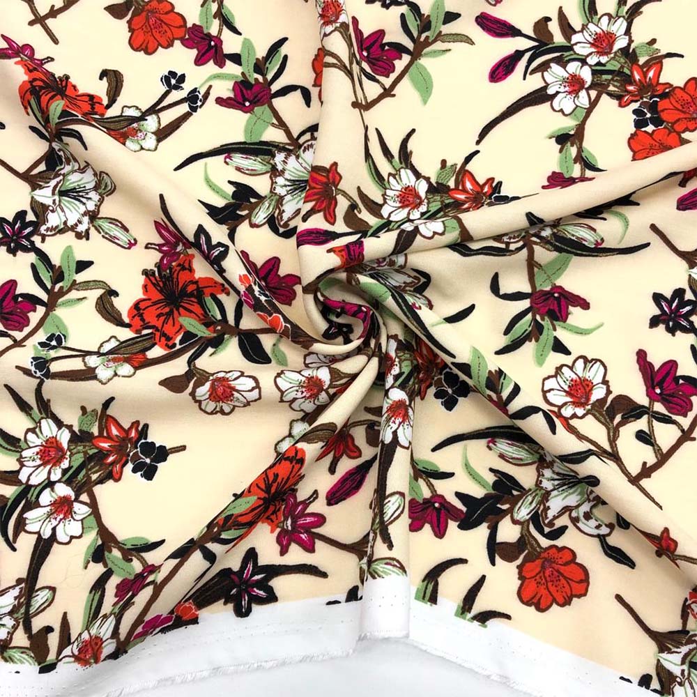 Desenli viskon kumaşımız çift en olup eni 150 cm’dir. Desenli Viskon kumaş dökümlü bir duruşa sahip, içeriğinde naylon, polyester, petrol maddesi bulundurmayan bir kumaştır. Pamuklu olmasından dolayı yakma terletme yapmaz hatta serin tutma özelliği vardır. Ter çekme özelliğine sahiptir. Sıcak mevsimlerde serin rahat bir kullanımına sağlar. Soğuk havalarda üşümeye sebep olacak etkisi olmaz. Hem yakma terletme yapmaz hem de kırışma yapmaz, dökümlü kumaş olduğu için azda olsa kırışma yapsa bile kendi kendine kırışıklığı düzelir robalı, büzgülü, fırfırlı, serbest pileli, çan, kiloş, vb. modellerde kullanılan iç göstermeyen viskon empirme kumaştır. Dolayısıyla astar istemeyen kullanışlı bir kumaştır. Tüylenme, renk atma gibi sorunlarla karşılaşmayacağınız pamuklu ve dökümlü bir kumaştır. Efil efil elbiselerde sıklıkla tercih edilen viskon kumaş günümüzde oldukça revaçta olan pamuklu kaliteli bir kumaştır. Pamuklu içeriğinden dolayı her yaş kesimine hitap eden sağlıklı bir kumaştır.