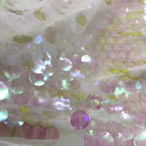 - Işıltılı ve Parlak Yüzey: Kumaşın üzerine işlenen pullar sayesinde ışığı yansıtan ışıltılı bir görünüme sahiptir.
